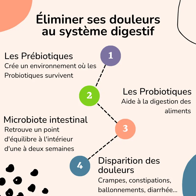 En plus d’ajouter de bonnes bactéries dans mon ventre (les probiotiques), ces bonnes bactéries pouvaient maintenant se multiplier par elles-mêmes grâce aux prébiotiques.
