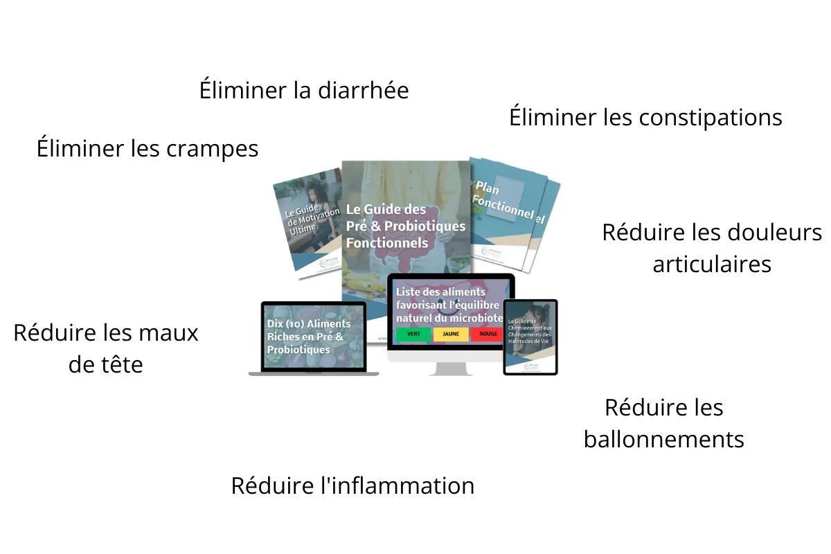 Ce sont les résultats positifs que le Guide des Pro et Prébiotiques Fonctionnels peut avoir sur ta santé.